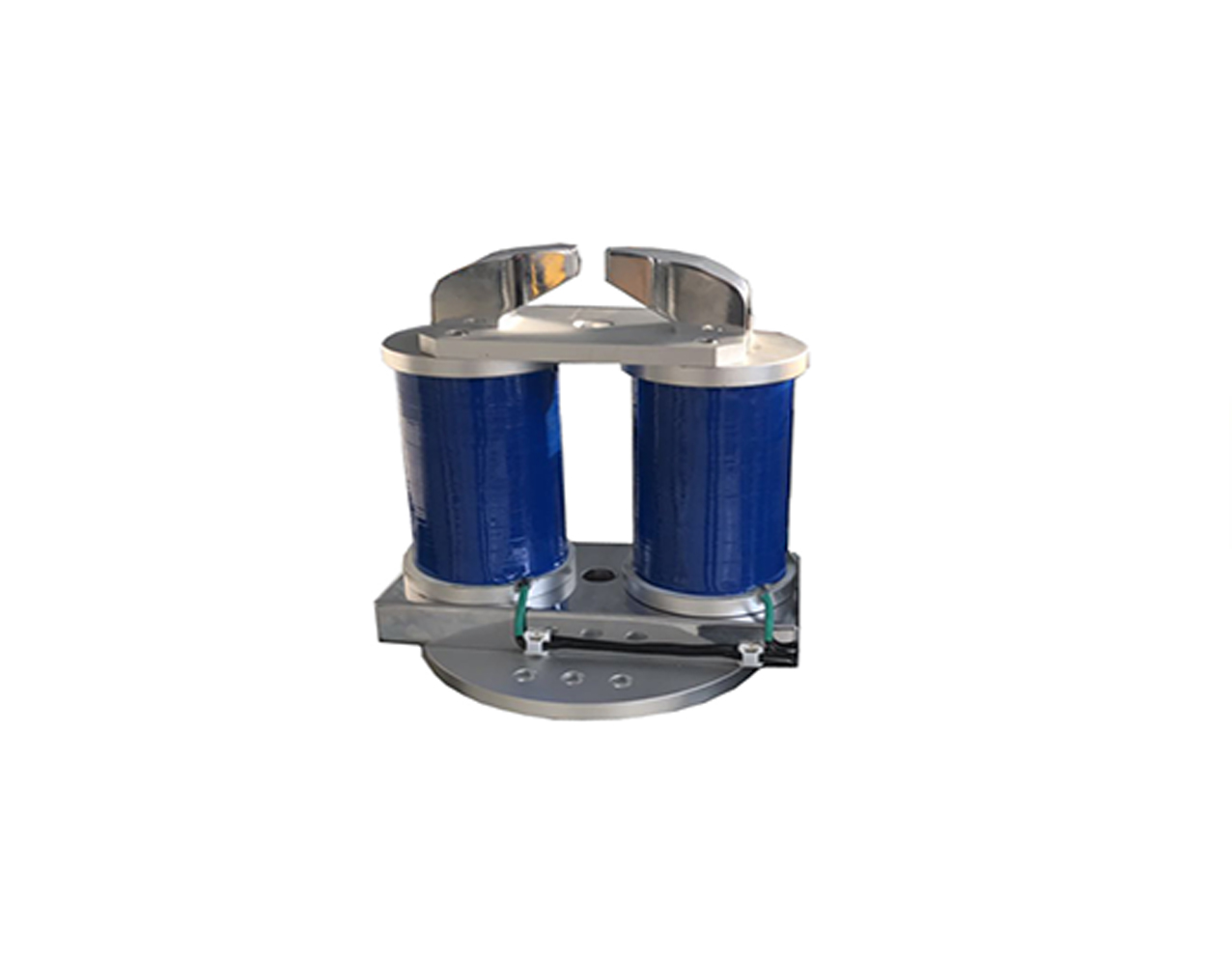 钳式电磁铁双极突出线包外侧,外形如钳,通常用来产生面内磁场,适合显微镜下、探针台、空间受局限、磁光实验,磁矿粉筛选等特殊使用环境。钳式电磁铁多为定制型,可根据用户使用条件、磁场要求设计外形尺寸。
