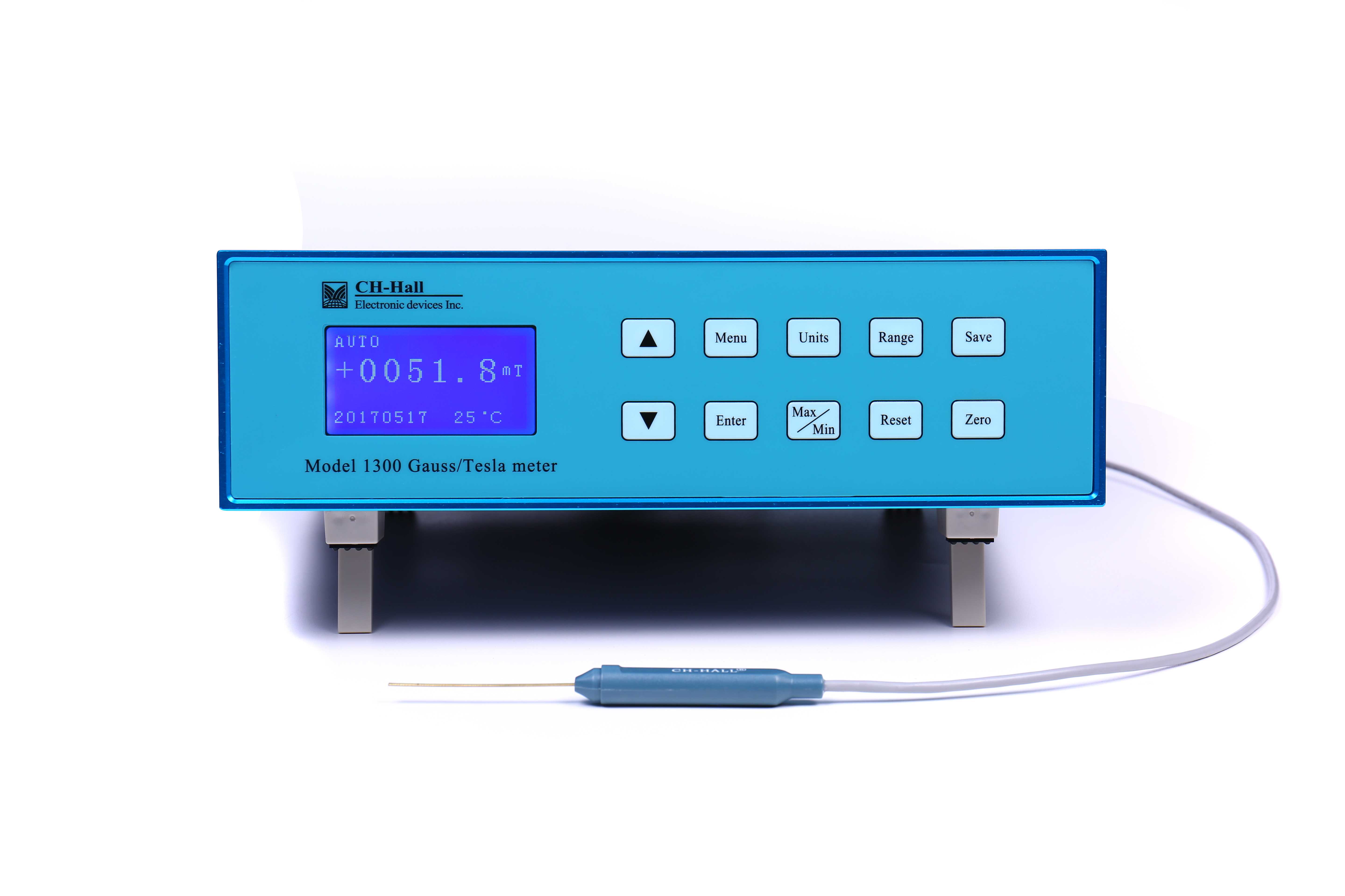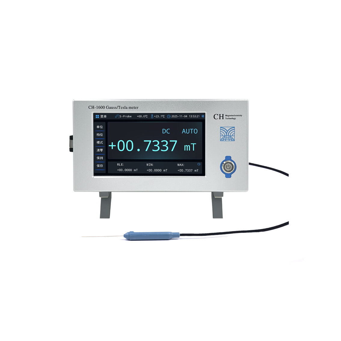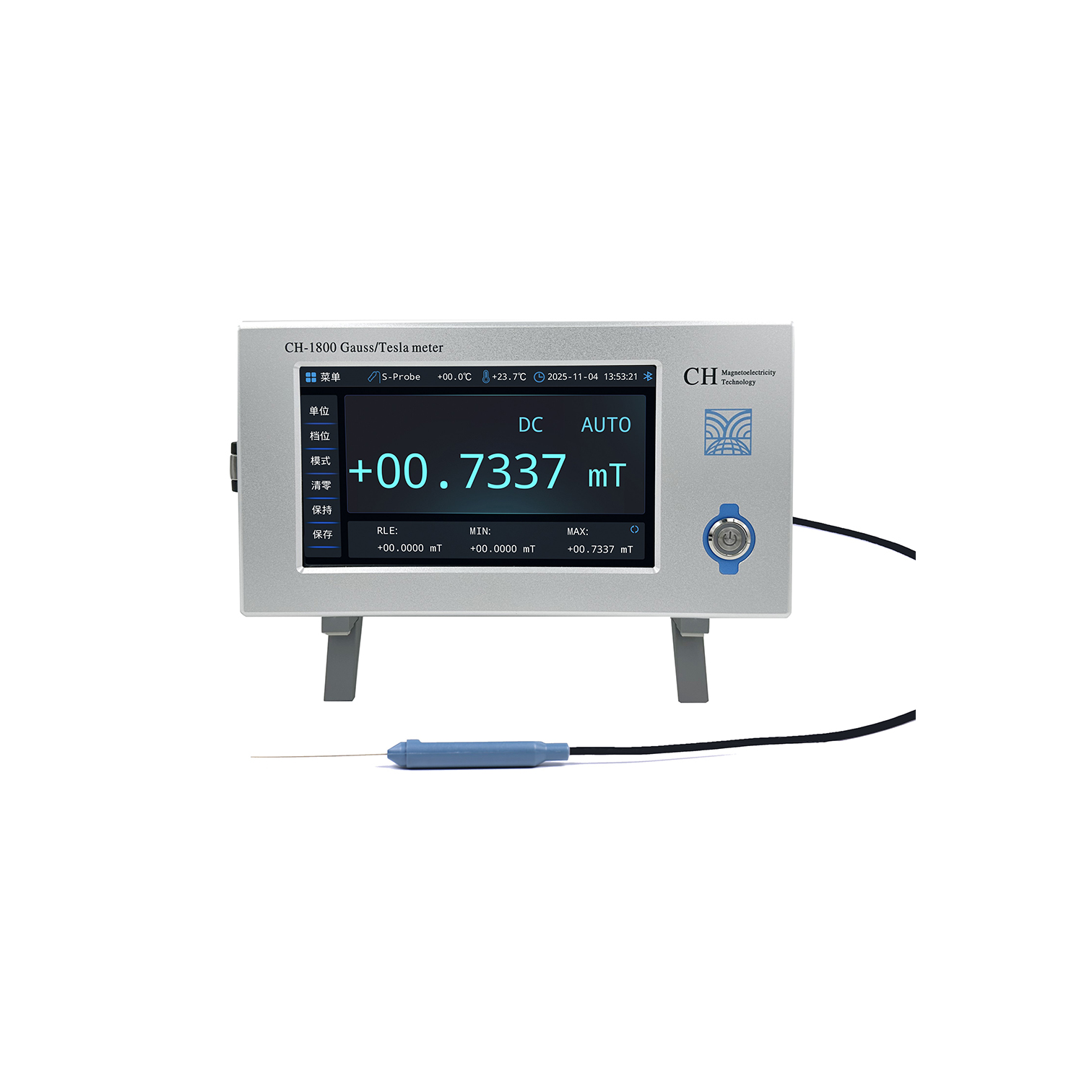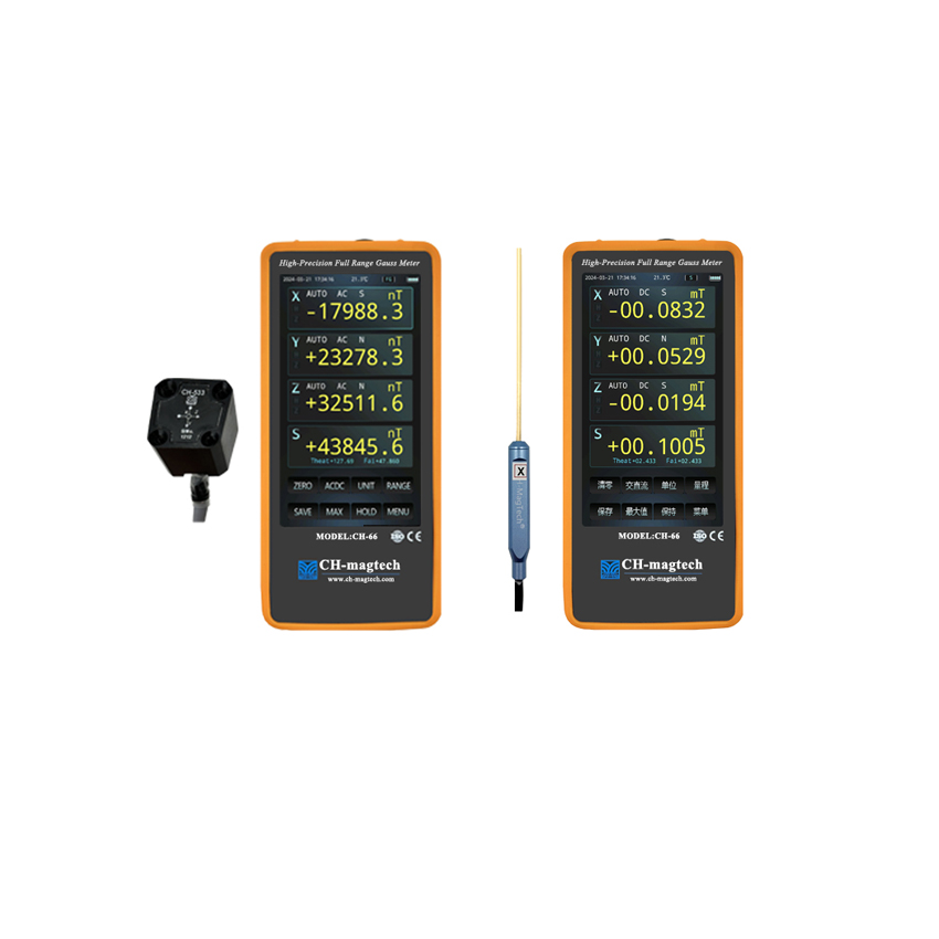 CH-1900高斯计极高精度的仪表适合绝大数的应用领域。自动较零,自动量程。保持模式可选极大值,极小值,峰值和谷值。仪表可同时测量和显示多种参数。带高精度的模拟输出(±3.0V)。测量单位可选Gs,mT,A/M或Oe。仪表带USB-232、BNC、CAN、工控接口。高分辨率电容触摸彩色图形显示,测量图形显示,高斯计自绘图,全菜单操作,6位读数,极高分辨率达1/600000, 最高25Kbps采集速率,分辨力达0.01μT,最大量程30T,基本精度±0.05%。标配翠海科技高斯计绘图软件PC版,标配具有温度补偿的高精度数字化探头。可选安卓版手机APP端通讯实现测试,存储,通讯,绘图,远程控制自动化一体机,高精度高速数字与模拟信号输出。